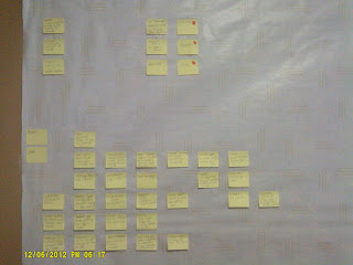 That’s one corner of the storyboard wall where I keep track of characters and conflicts. It’s weird, but sometimes it helps to be able to stand up, pace, and physically move pieces and parts around. And all of this so that no one can say “I totally knew that would happen.” (I can’t show the rest of the storyboard because someone *cough* HUSBAND *cough* wrote something lewd over to the right in black permanent marker.)